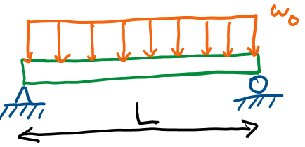 This video describes a technique for plotting the shear force and bending moments across a beam using the integral and differential forms relating distributed forces to internal shear forces and internal shear forces to internal bending moments. There is an example of a beam loaded with a distributed force. The question involves a pinned-pinned beam with a distributed force acting across the beam.