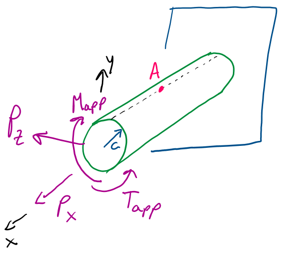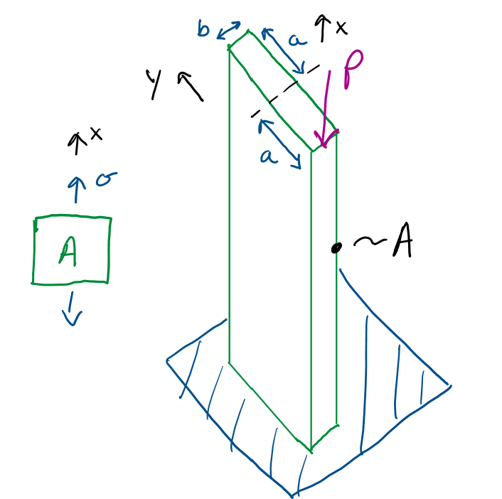 Determine the normal stress at location A. The normal stress is along the x- direction.